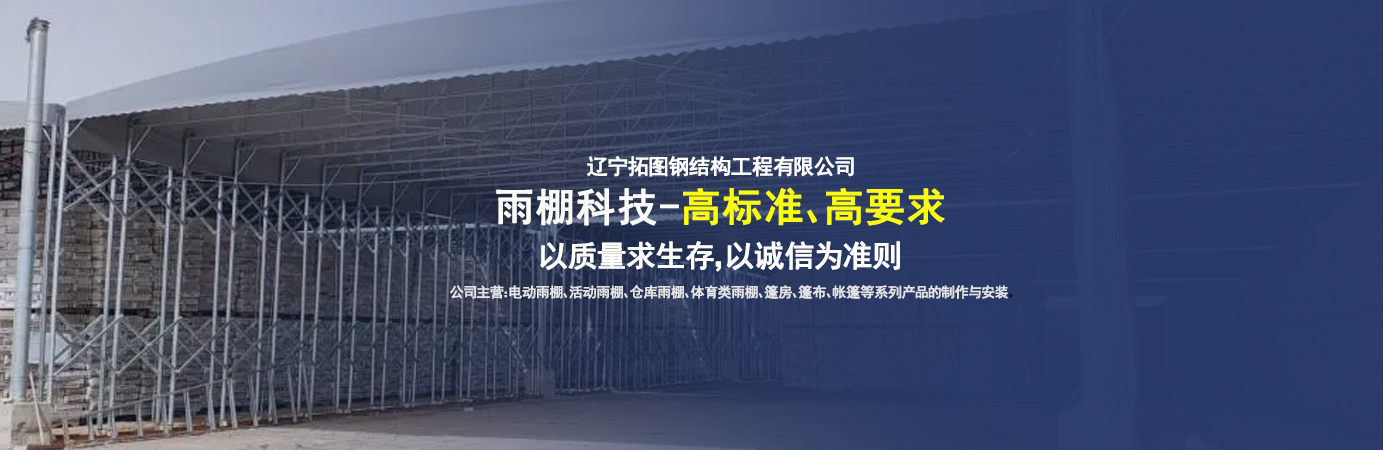 遼寧拓圖鋼結構工程有限公司是一家專業從事推拉篷設計、制作、安裝、使用、維修的綜合性公司。公司主營:電動雨棚、活動雨棚、倉庫雨棚、體育類雨棚、篷房、篷布、帳篷等系列產品的制作與安裝。 遼寧拓圖鋼結構工程有限公司堅持以市場為導向,以科技創新為動力,以質量求生存,以誠信為準則,倡導求實、進取、創新的企業精神?!翱茖W的管理、嚴謹的設計、 的制作安裝、嚴格的質量檢測、良好的后期服務成就企業的信譽,為您提供優質服務?! ?nbsp; 遼寧拓圖鋼結構工程有限公司傾力于開發應用三維空間結構與新材料的結合,將廣告藝術視覺表現形式與張力膜材科學的結合,推出多彩推拉蓬,依靠先進的科學技術,將推拉蓬建筑表現形式無限延伸,立志走在建筑科學的前沿,引導建筑時尚潮流,我們的目標是使推拉蓬建筑在中國發展壯大。 遼寧拓圖鋼結構工程有限公司憑著極強的事業熱情和豐富的專業經驗以“勤勉進取、銳意創新、至誠至信”的精神使公司得到迅速健康發展,業務范圍遍及全國??茖W的管理、嚴謹的設計、高標準的制作安裝流程,嚴格把控產品質量,熱誠的售后服務是企業競爭力的源泉?! ?nbsp; 遼寧拓圖鋼結構工程有限公司人愿以最誠摯的態度,歡迎廣大客戶的蒞臨與溝通!愿為市場提供優...